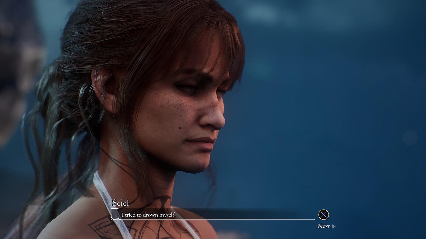 Sidenote: I’ve read a lot of takes claiming that the Dessendres aren’t meant to be portrayed sympathetically, merely realistically. I don’t think what’s in the game supports this idea. In Maelle’s ending, for example, you’re treated to an extended shot of Verso blubbering for death. It’s clear the cinematic intention here is to evoke some form of pity (i.e. sympathy). This is just one of many instances of this type of framing.